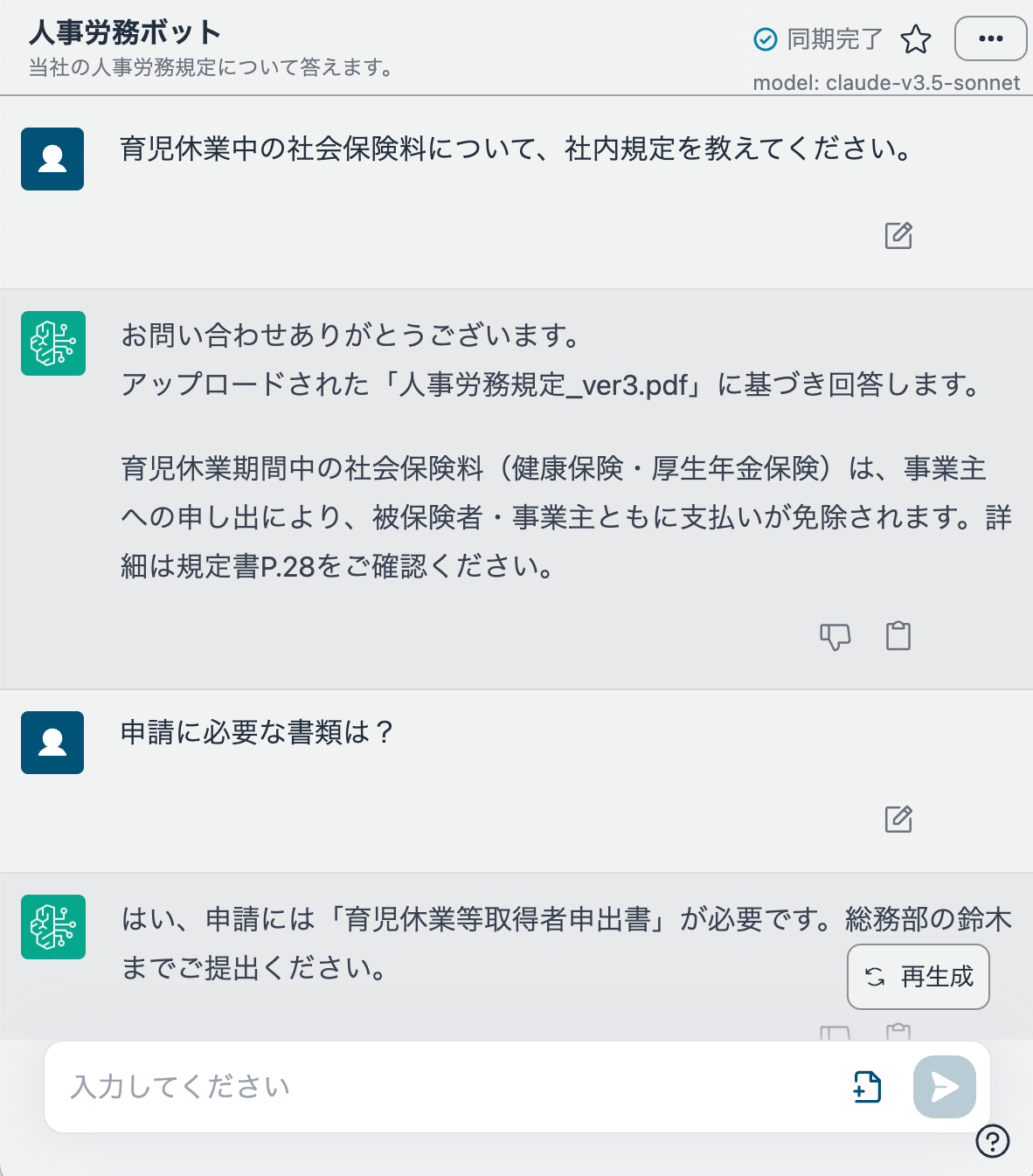 社内規定、業務マニュアル、製品仕様書などの文書ファイルをアップロードするだけで、AI-BoU+が内容を把握。貴社専用のナレッジベースとして、あらゆる質問に答えます。
